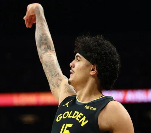 桑托斯身高2米01,臂展2米13,拥有标准的NBA锋线身材,是2022届的55号秀,目前23岁,生涯前两个赛季,他都是勇士的边缘轮换: