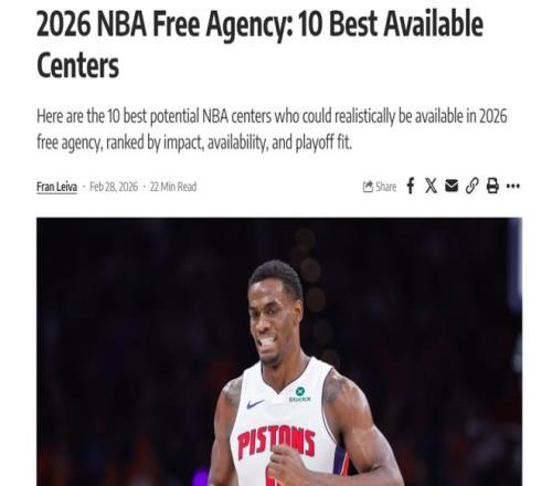 准备开抢!美媒评26年自由市场10大中锋:艾顿第6湖人心上人排第2