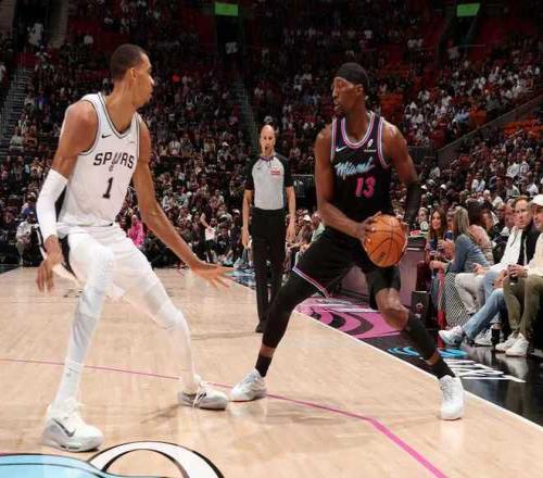 马刺过去5场豪取5连胜,热火过去4场遭遇4连败,本赛季首次交锋马刺主场107-101战胜热火。本场马刺缺少加西亚,热火缺少罗齐尔。首节开局双方早早开启对攻模式,开局阶段缠斗至9-9,马刺之后逐步取得22-20微弱领先优势。福克斯攻传结合率领马刺扩大32-25领先优势,热火追到差4分,巴恩斯三分回敬,首节结束马刺38-31领先热火。首节马刺28中13,其中三分13中6,福克斯10分;热火22中11,其中三分11中5,希罗与阿德巴约均8分。
