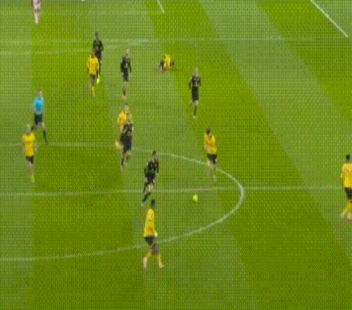 第25分钟,曼联在前场逼抢,狼队出现失误,库尼亚拿球后杀进禁区,关键时刻他送出横传,虽然费尔南德斯滑倒,但是他马上起身接球,调整后顺势起脚打门,皮球被挡了一下后还是飞进大门,曼联在客场早早1-0领先。半场结束前,狼队终于扳平比分,2队1-1回到更衣室。