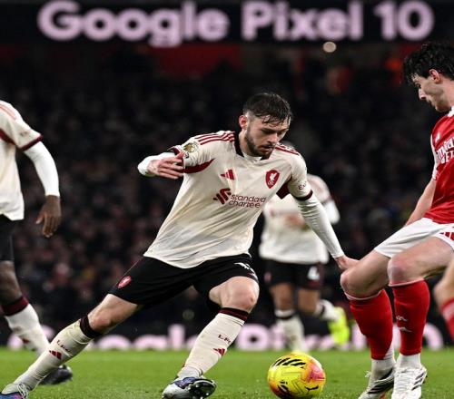 第26分钟阿森纳后防出现巨大失误,阿利森的传球直接送到了布拉德利的脚下,后者也是毫不犹豫,直接起脚吊射,可惜运气不佳,皮球击中横梁被弹出,斯洛特上任之后,利物浦在联赛31次击中门框,同期英超第一,半场结束之前,阿森纳突然发力,连续形成有威胁的进攻,但赖斯和萨卡的打门都被利物浦后防化解,两支球队带着0-0的比分,回到了中场更衣室。